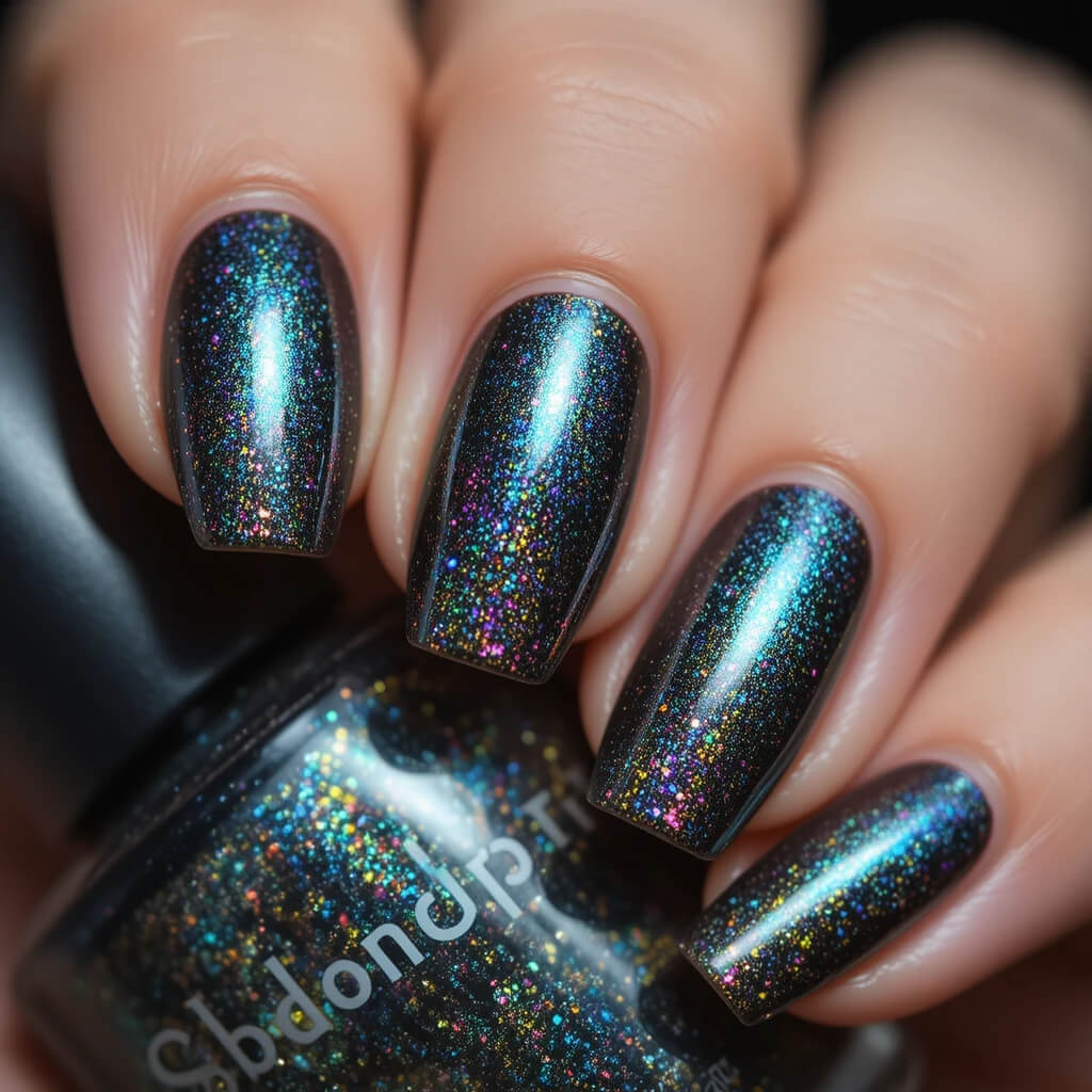 It gives a futuristic, jewel-like depth without needing heavy layering or embellishment. It’s especially striking on deep or muted shades.