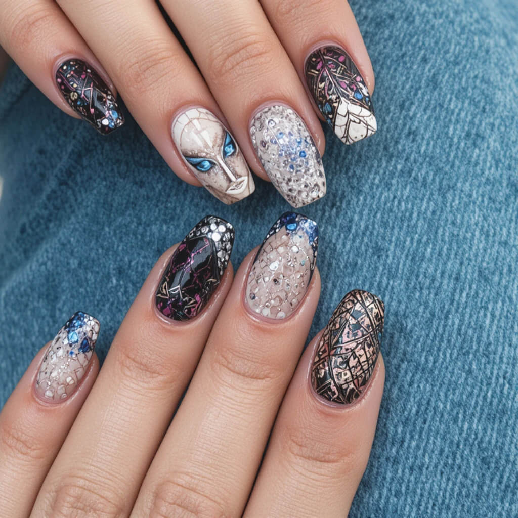 This lets you combine your favorite trends—say a chrome accent, a neutral base, and a dark moody nail—all in one mani. It offers versatility and creativity.