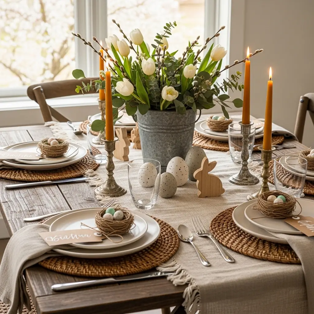🌿 3. Rustic Farmhouse Easter Table Setting