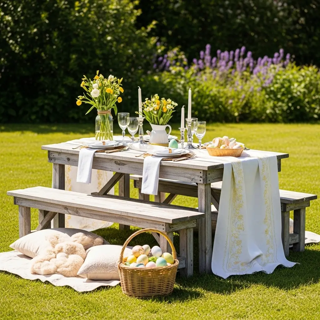 🧺 7. Outdoor Picnic-Style Easter Table Setting