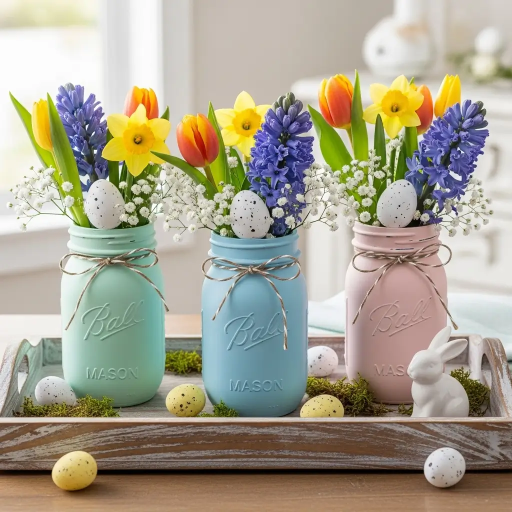Mason jars are incredibly versatile and can be used for many creative decorations. For Easter, they make charming and affordable centerpieces.
