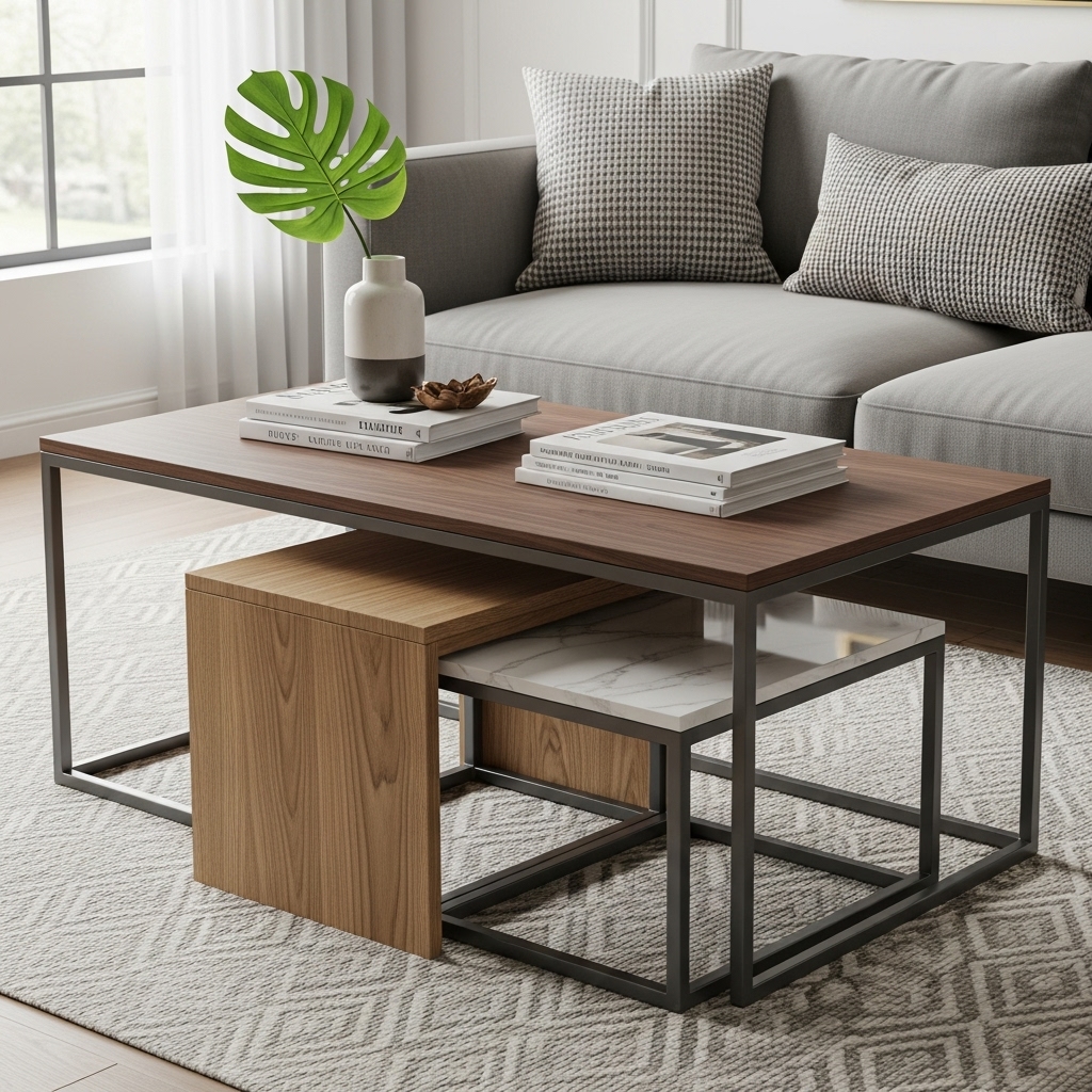 Nested coffee tables consist of two or more tables that fit neatly together. This design emphasizes flexibility making it perfect for dynamic living spaces.