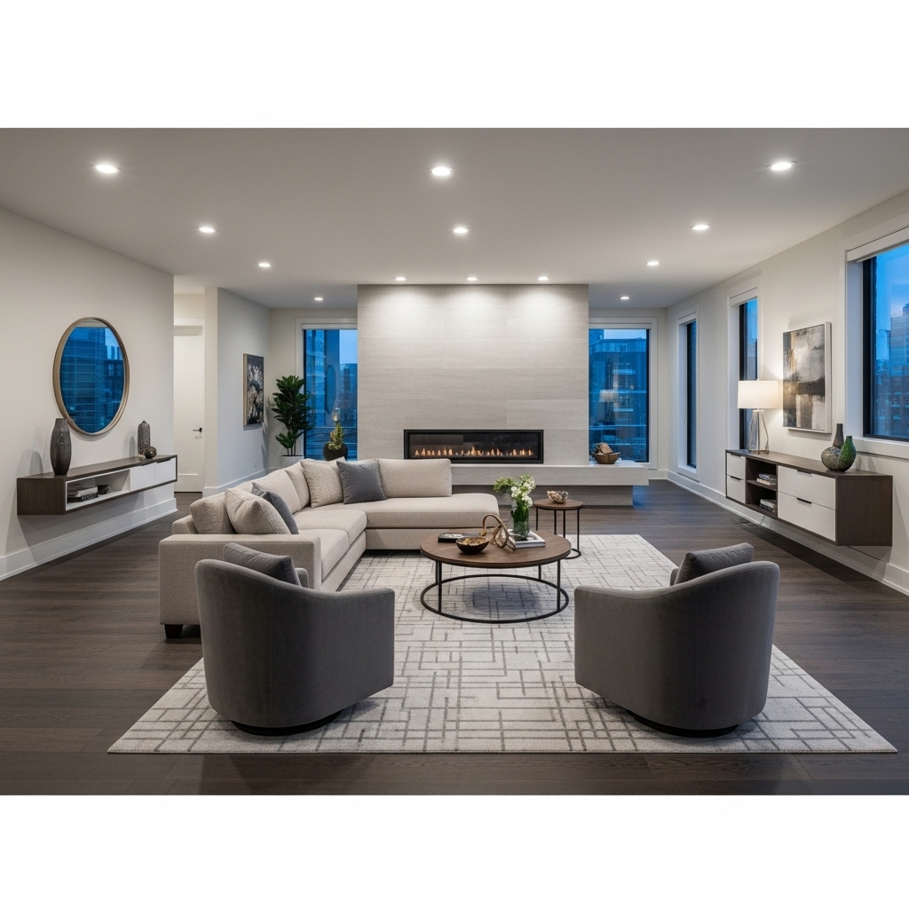 - Floating furniture without a rug, which can feel disconnected.