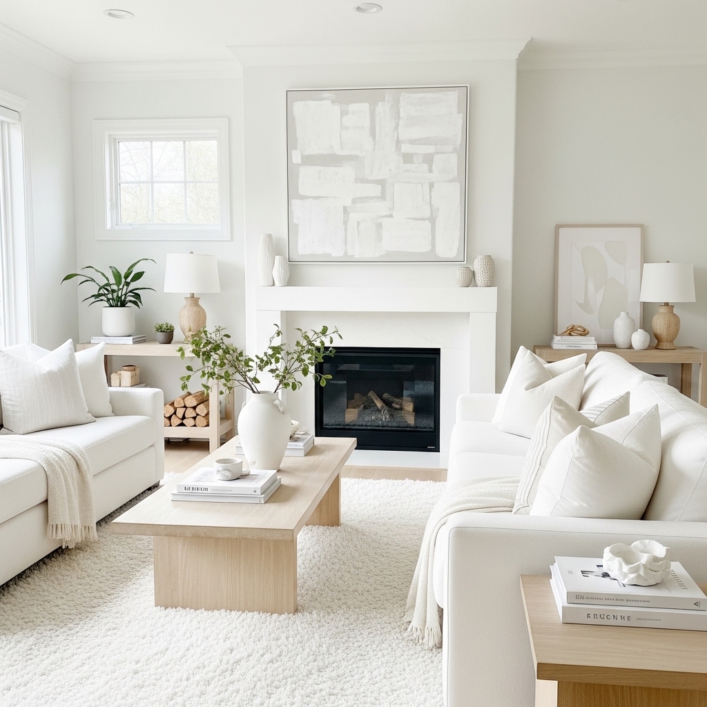- Layered textures prevent white from feeling flat.