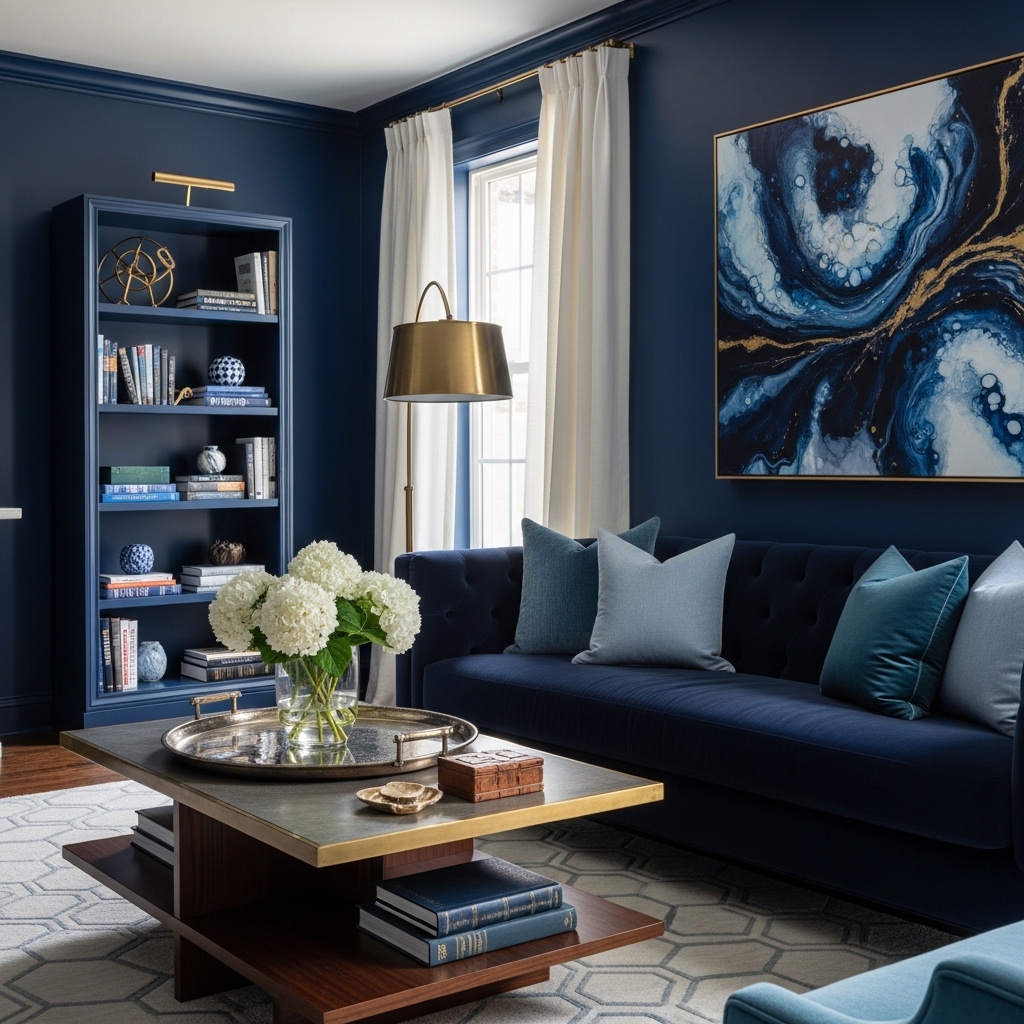 Blue is calming, confident, and versatile. Deep blues—such as navy or indigo—add drama and richness without feeling heavy or oppressive. They work particularly well in living rooms where you want a sense of depth and sophistication.