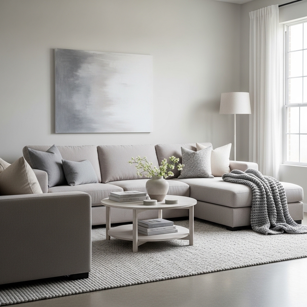 - Add contrasting accents like charcoal cushions or navy throws.